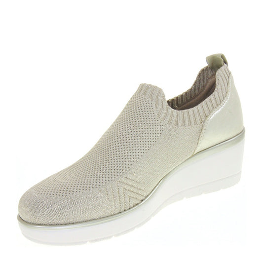 VALLEVERDE 36441 Slip On Casual Donna Tessuto Oro Tacco Zeppa 5Cm Suola Gomma