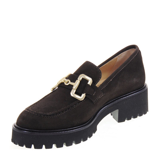 LE BRIELLA Z800C1 Mocassini Casual Donna Scamosciato Testa Moro e Pelle Nera Tacco Grosso 4Cm Suola Extralight