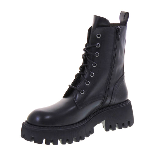PIRANHA 301 Anfibi Casual Donna Pelle Nero Tacco Grosso 5Cm Suola Gomma Gambale Caviglia