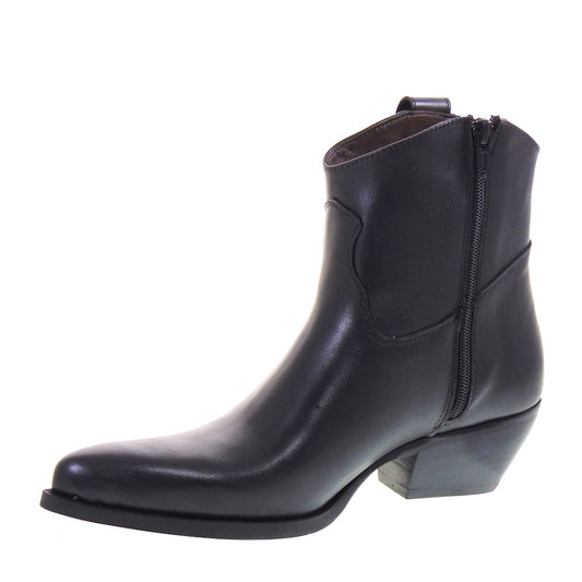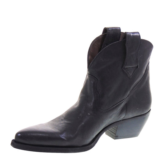 PIRANHA 504 Texani Bassi Donna Pelle Nero Tacco Western 4Cm Suola Gomma Gambale Caviglia