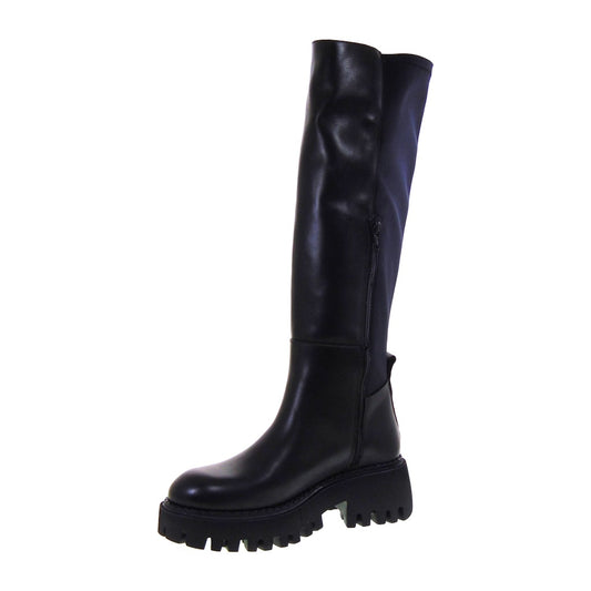 PIRANHA 312 Stivali Casual Donna Pelle Nero Tacco Grosso 5Cm Suola Gomma Gambale Ginocchio