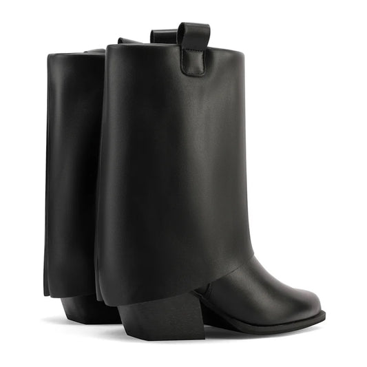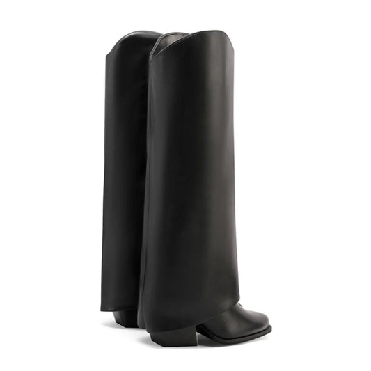 QUEEN HELENA X31109 Stivali Moda Donna Pelle Sintetica Nero Tacco Western 6Cm Suola Gomma Gambale Ginocchio