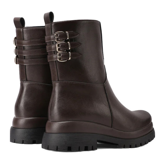 QUEEN HELENA X3399 Anfibi Casual Moda Donna Pelle Sintetica Brown Tacco Grosso 5Cm Suola Gomma Gambale Caviglia
