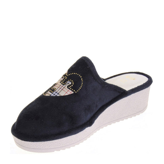 RIPOSELLA WB03BX Pantofole Casa Camera Donna Samia Panno Tacco Zeppa 5Cm Suola Gomma