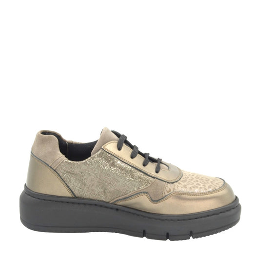 STILEDIVITA 9137 Sneaker Casual Donna Pelle Laminata Bronzo Tacco Zeppa 3Cm Suola Gomma