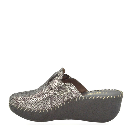 STILEDIVITA 8654 Pantofole Casa Camera Donna Pelle Liscia Acciaio Tacco Zeppa 6Cm Suola Gomma