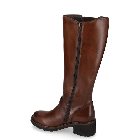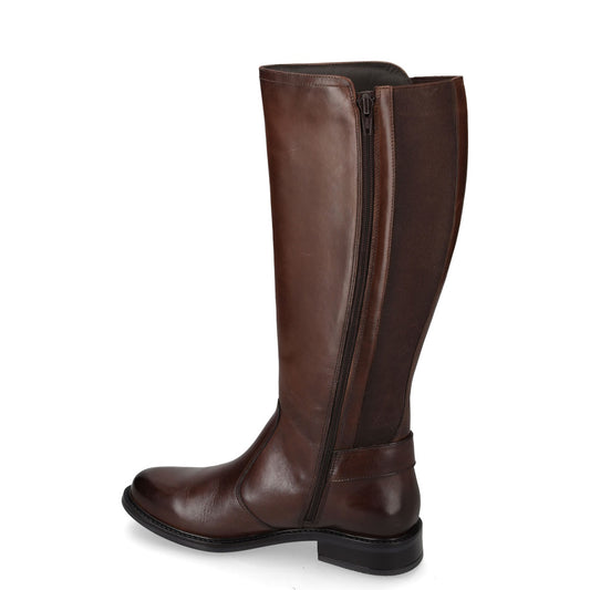 VALLEVERDE 17105 Stivali Casual Donna Pelle Marrone Tacco Grosso 3Cm Suola Gomma Gambale Polpaccio