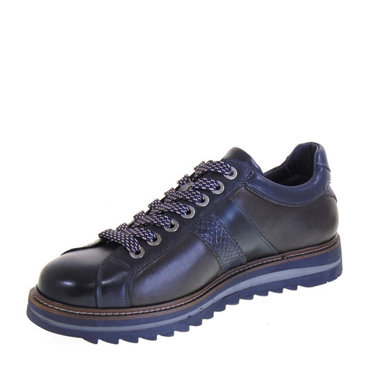 ZEN 076052 Scarponcini Casual Uomo Pelle Blu Suola Gomma Gambale Caviglia