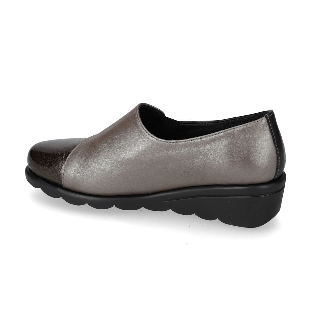 VALLEVERDE VS10304AE Mocassini Casual Donna Pelle Vernice Grigio Tacco Zeppa 4Cm Suola Gomma